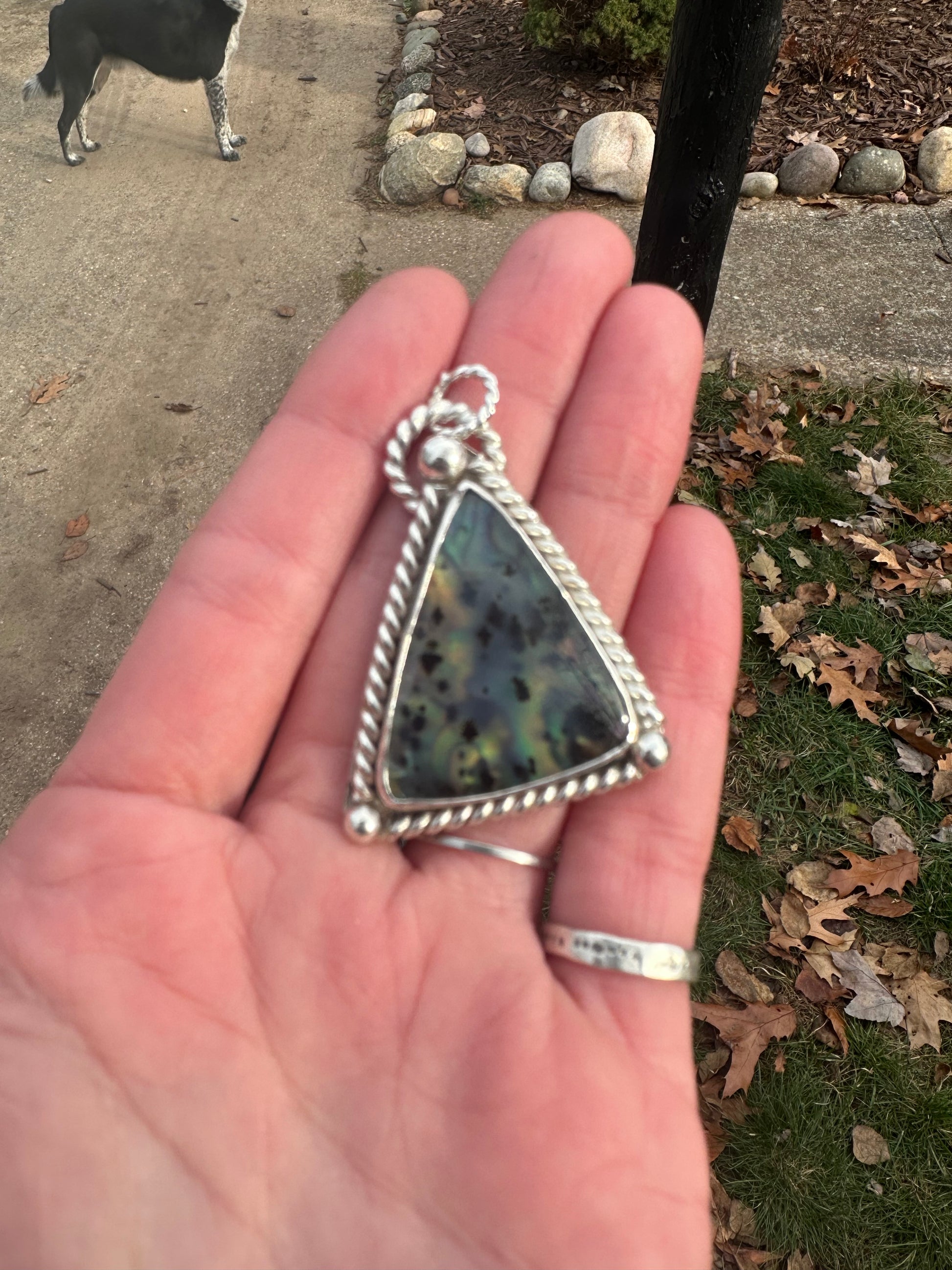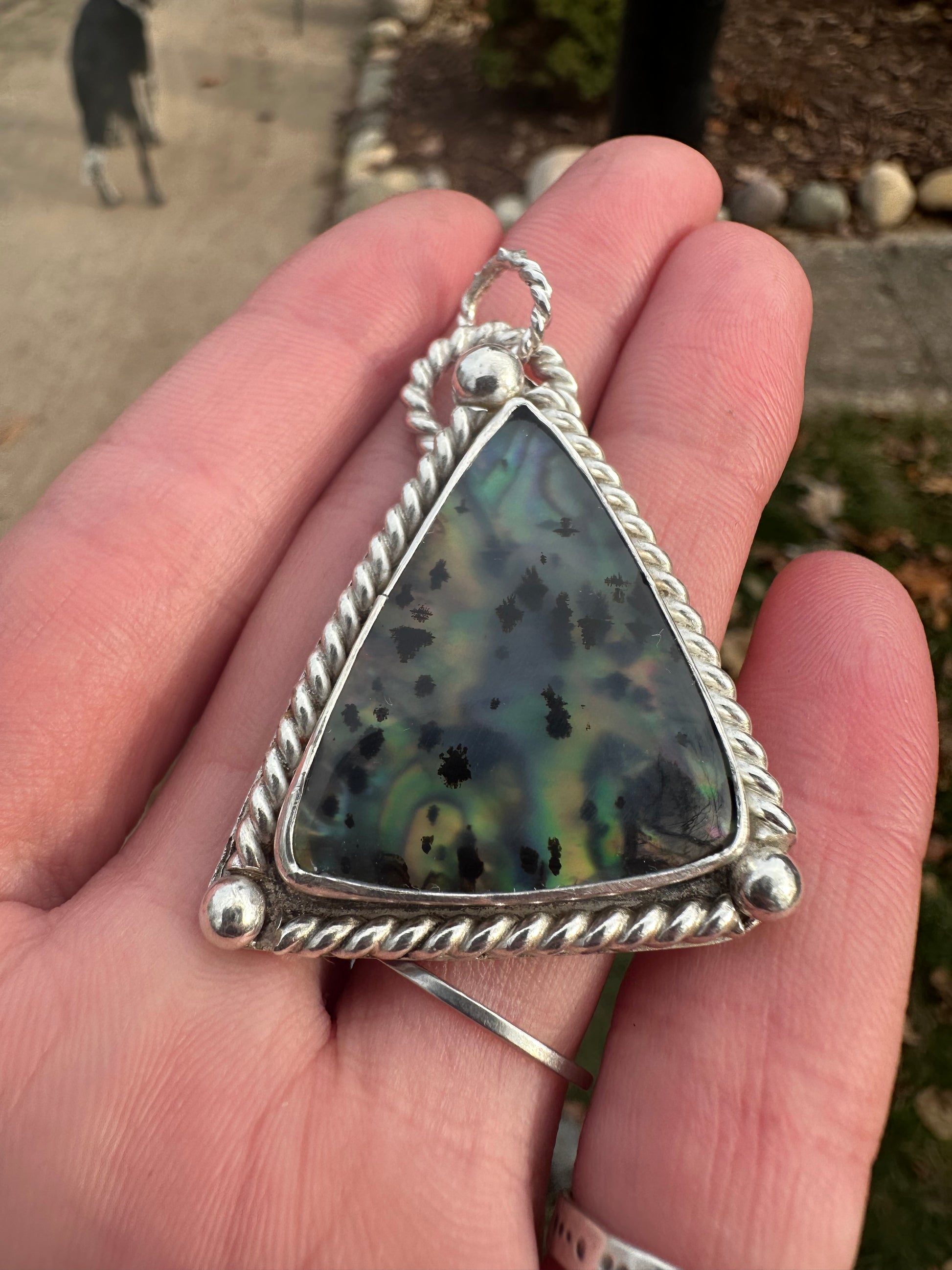Montana agate backed with abalone shell from mineral and metal 🩵